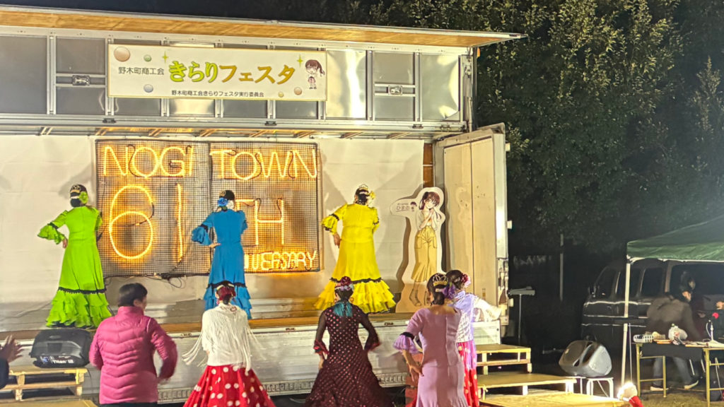 11月29日(土)、野木駅西口の富士見公園で商工会きらりフェスタが開催されました。数々の屋台が並ぶなか、盆踊りやフラメンコ、小島菜々海さんの歌ステージが行われました。小島菜々海さんが町長・サンちゃん・のぎのんに囲まれて歌う珍しい場面もありました。同時に野木駅前東西ロータリーでイルミネーションの点灯も始まりました。